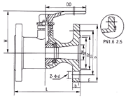 Q41M-16(Z)型主要外形尺寸和连接尺寸: